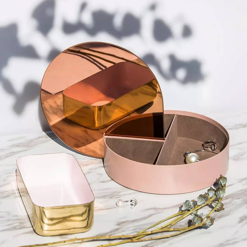 產(chǎn)品描述: AYTM的這款Gutta首飾盒有著簡約又不失優(yōu)雅的設計,同時也提供精巧的功能性:它可將鏡面的蓋子插入盒子的間隔內(nèi)。整個首飾盒由金屬、鏡面玻璃和滌綸絲絨組成,小號的盒子不包含隔間。